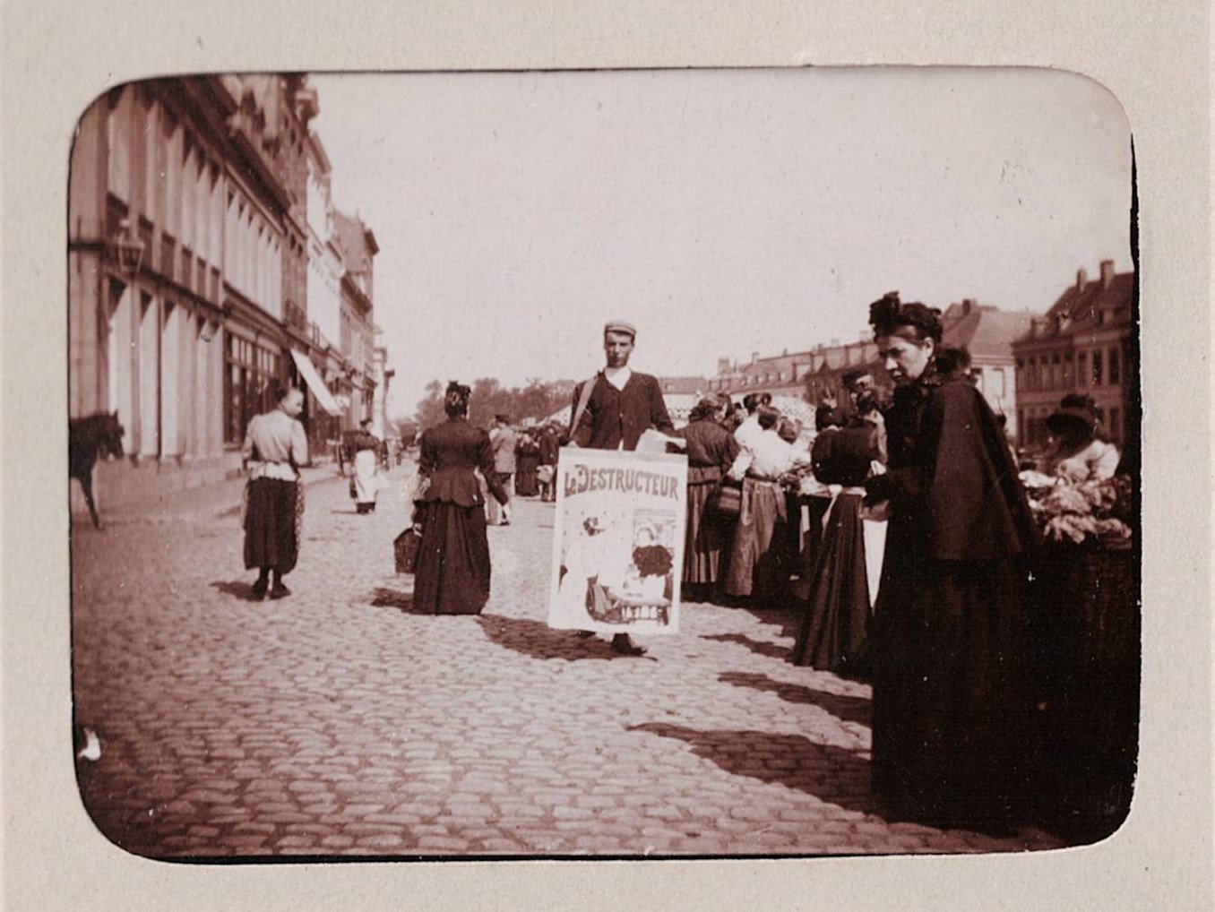 | 4890 | appareil photo gant, quais, groupes et portraits | G. Dumonchaux | coin de la rue de l'Hôpital Notre-Dame et le quai Notre-Dame ?, enseigne: tabac, cigares, bougies, denrées coloniales | ||